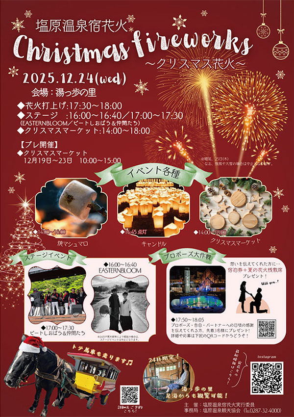 News2025年12月26日塩原温泉宿花火~クリスマス花火~