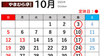 News2025年10月1日やまむら亭「10月営業カレンダー」