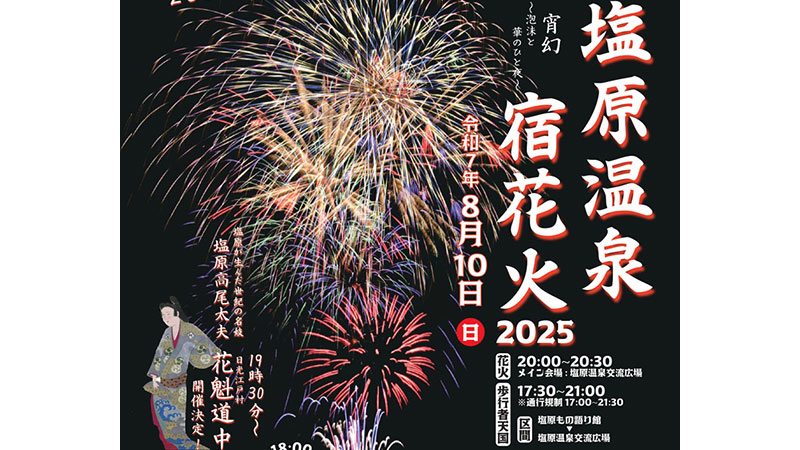 2025年8月10日(日)塩原温泉『宿花火』開催されます。 屋台などが出るメイン会場がやまむら亭塩原店の向かい側「塩原温泉交流広場」になります。 当日は有料駐車場もあり…